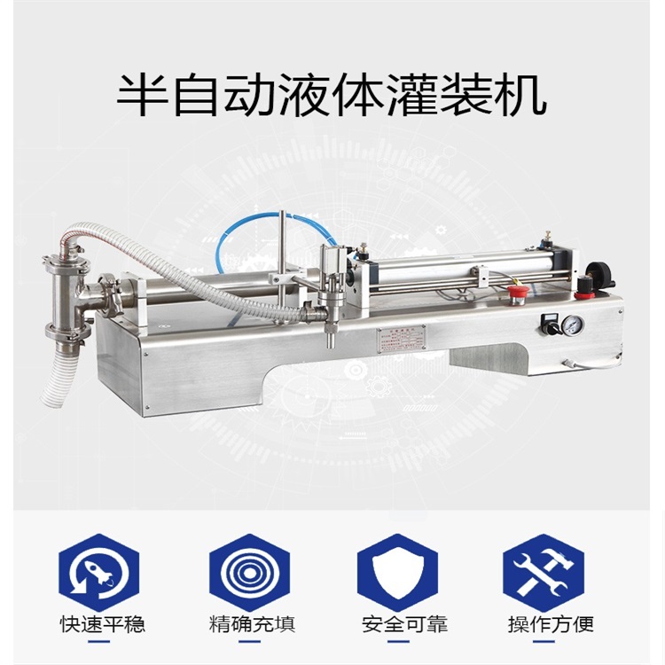 小型半自動單頭液體灌裝機主要用于食品、醫藥、化工、日化、洗滌類、農藥及特殊行業的灌裝。該設備是迅捷機械引進國外先進灌裝機技術對傳統的小型半自動單頭液體灌裝機進行了進一步的改造和創新。改造后的設備結構簡單合理,灌裝精確度高,操作簡便,使用靈活。現已廣泛應用于全國上萬家客戶的灌裝生產線中。