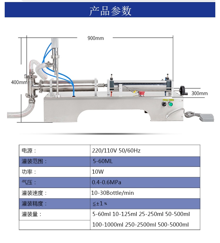 灌裝精度±1%-±2%±1%-±2%±1%-±2%±1%-±2%±1%-±2%±1%-±2%